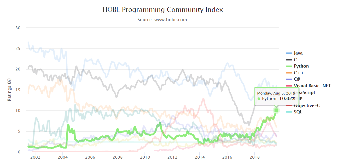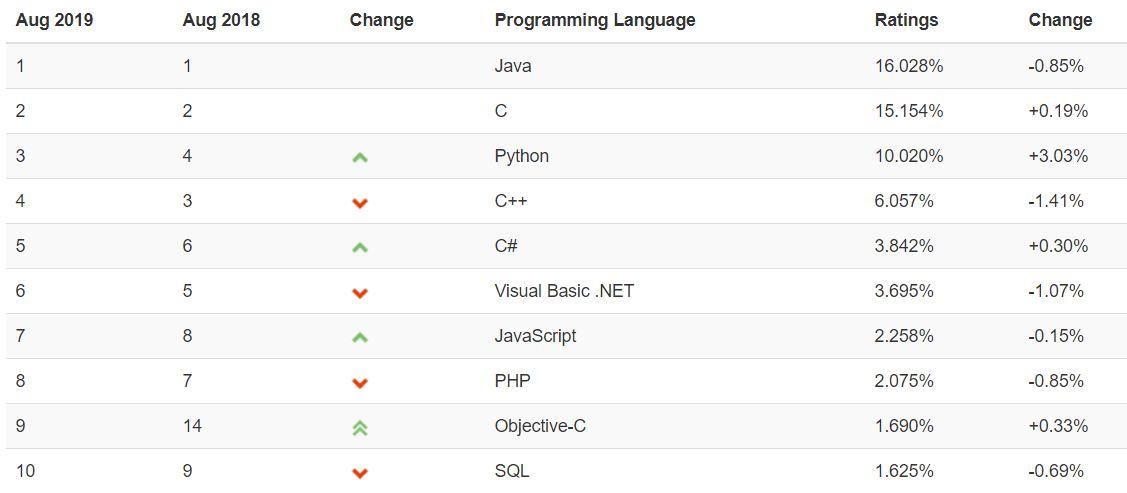 출처: TIOBE 인덱스 2019년 8월 기준