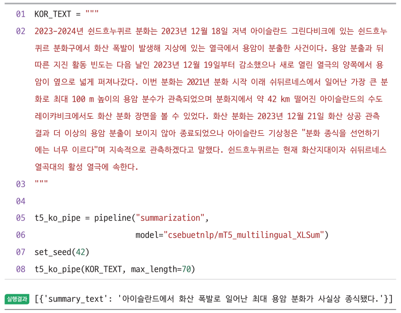 BART는 인코더가 입력 문장을 이해하고, 디코더가 요약문이나 변환 문장을 생성합니다. 디코더에는 인코더의 출력을 연결하기 위한 크로스 어텐션이 추가되어, 입력 문장에서 중요한 정보를 집중적으로 반영합니다. 허깅페이스의 facebook/bart-large-cnn 모델은 영문 뉴스 요약 작업에, 한국어 버전인 KoBART는 국문 요약이나 SNS 텍스트 요약에 자주 사용됩니다.
